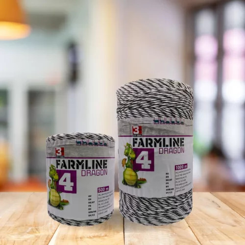 A Dragon 4 egy megerősített, prémium minőségű villanypásztor zsinór (vezeték), amely a kiváló láthatóságot ötvözi a nagy szakítószilárdsággal. Az 500 méteres kiszerelés és a benne futó 4 darab rozsdamentes acélvezető alkalmassá teszi közepes és hosszabb kerítések biztonságos kiépítésére. A fekete-fehér színkombináció éles kontrasztot ad, így az állatok minden napszakban jól észlelik a kerítés vonalát.