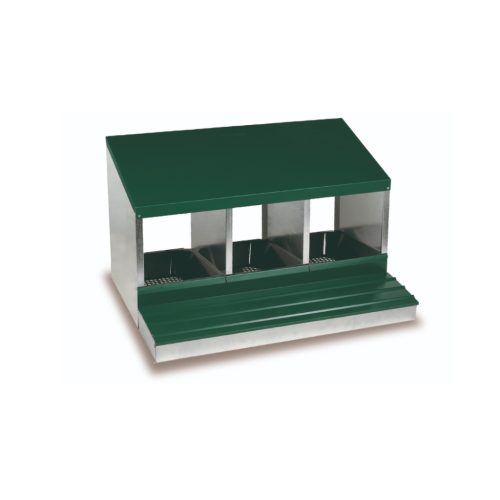 Riječ je o izdržljivom tojištu od pocinčanog čeličnog lima s tri odvojena prostora za nesenje, opremljenom roll-out (legurulós) sustavom. Dizajn omogućuje da se jaje odmah nakon nesenja otkotrlja u zaštićeni, poklopcem zatvoren spremnik, čime se smanjuje rizik od kljuvanja jaja, lomljenja i onečišćenja ljuske.