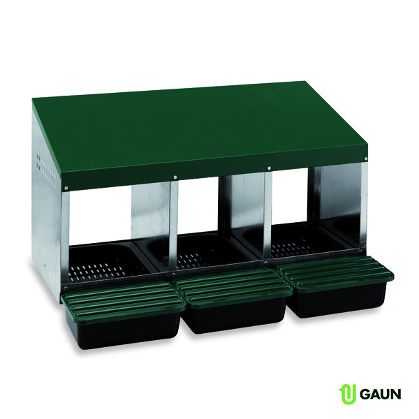Tražite jednostavno, izdržljivo i higijensko gnijezdo za tri nesilice? Ovo tropolni gnijezdo s plastičnim dnom praktičan je izbor za manje uzgajivače peradi. Konstrukcija od pocinčanog metala osigurava čvrstoću i dugotrajnost, dok plastično dno olakšava čišćenje i skupljanje jaja.